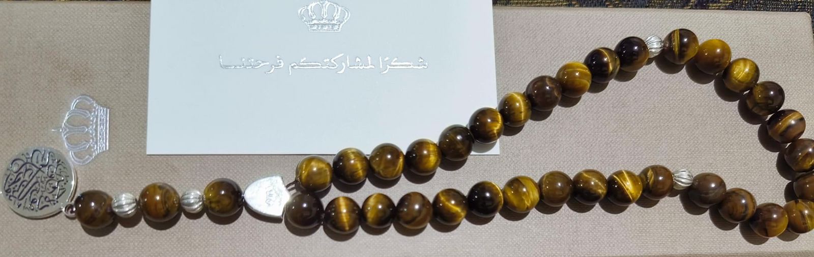 مسبحة منقوش عليها اسم الحسين ورجوة هدية لحاضري مأدبة العشاء