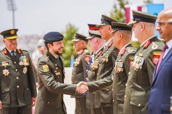وكان في استقبال سموه في موقع الاحتفال، الذي حضره سمو الأمير هاشم بن عبدالله الثاني، وسمو الأمير راشد بن الحسن مستشار جلالة الملك، ورئيس الوزراء الدكتور بشر الخصاونة، رئيس هيئة الأركان المشتركة اللواء الركن يوسف أحمد الحنيطي.