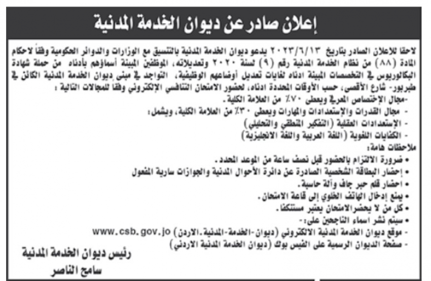 بالأسماء .. أردنيون مدعوون لحضور الامتحان التنافسي