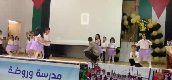 وأعرب غليلات عن سعادته عند صعوده الى مسرح المدرسة الى جانب ابنته أرياف، حيث اقيم حفل تخريج لطلبة الروضة.