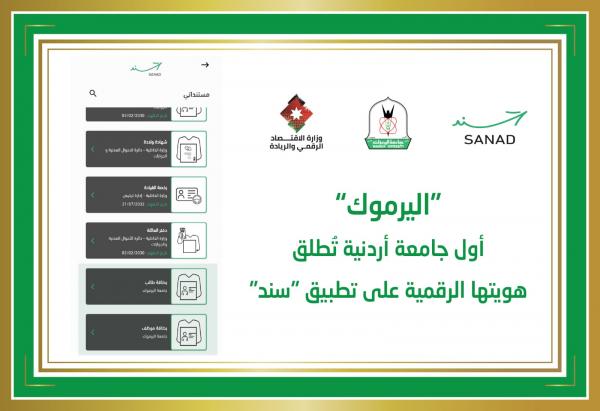 ومع تفعيل هذه الخاصية، تكون "اليرموك" أول جامعة أردنية تُفعل هذه الخاصية وتعتمد استخدام "بطاقات طلبتها ومنسوبيها" على تطبيق "سند" كخطوة أولى منها في سياق خطتها الاستراتيجية نحو التحول إلى المستند الرقمي، الأمر الذي سيُمكن جميع منسوبيها من استخدام الهوية الرقمية على تطبيق "سند" بدلا من حمل البطاقات / الهويات التقليدية.