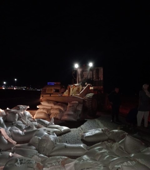وقال المصدر ان الناقة نفقت حيث تسببت بانقلاب حمولة الشاحنة من الشعير على الطريق الصحراوي.