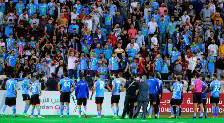 السوسنة - رفعت جماهير الفيصلي في المباراة التي تجمعه مع نادي الرمثا، السبت، في الجولة الثامنة من بطولة درع المئوية الأردني، يافطة كتب عليها "النصرة للقرآن الكريم كتابنا الكريم ونورنا العظيم".