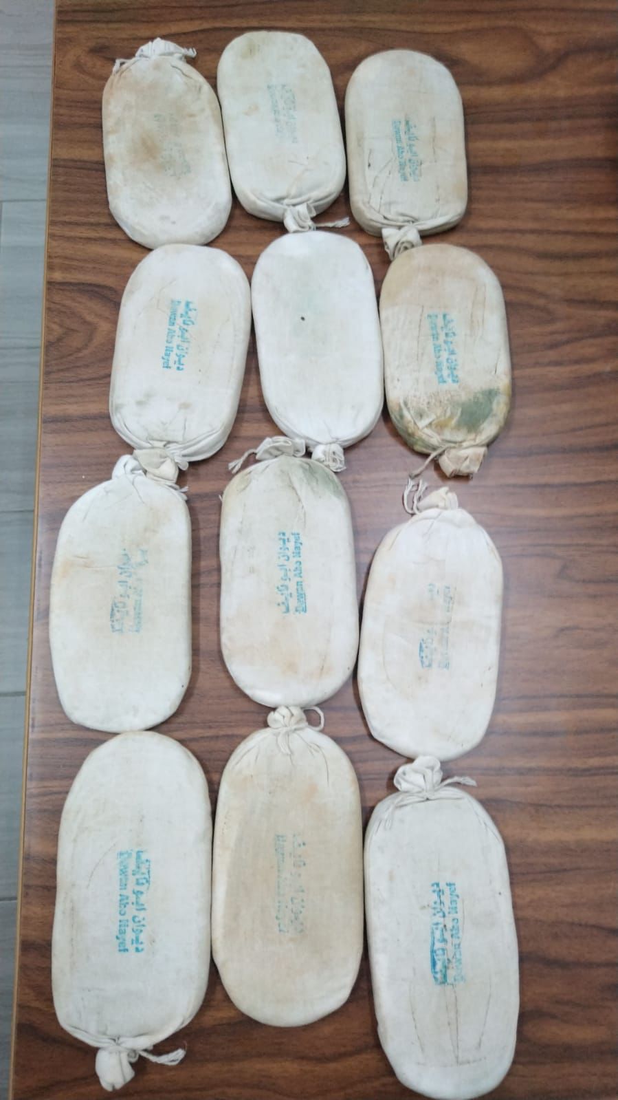 فيما دوهم منزل أحد تجار المخدرات في البادية الشمالية بعد التأكد من معلومات وردت حول تخزينه لكميات من المواد المخدرة في محيط المنزل ، والقي القبض عليه وبتمشيط محيط المنزل عثر على حفرة بداخلها 12 كف من مادة الحشيش المخدرة .