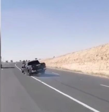 السوسنة - ضبط العاملون في الدوريات الخارجية، سائقا كان يقود بشكل متهور واستعراضي ودون وجود إطارات أمامية للمركبة، على الطريق الصحراوي /منطقة سواقه.