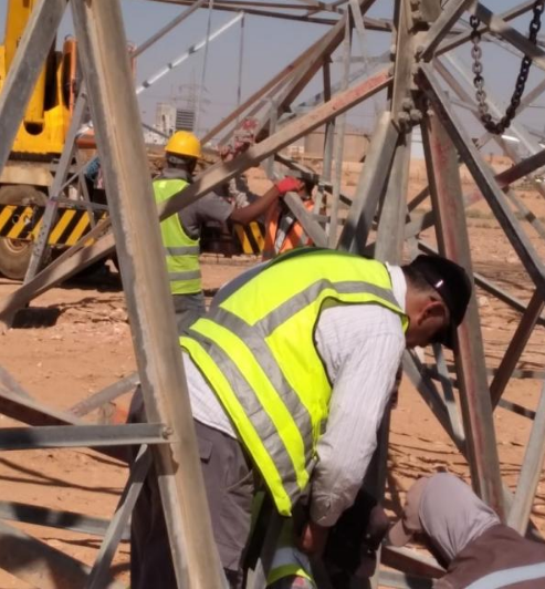 السوسنة - قالت شركة الكهرباء الوطنية، إن اعمال تركيب الابراج في مشروع خط الربط الكهربائي الاردني العراقي مستمرة، فيما تمت أعمال تركيب "جانتري 132 ك.ف" لمشروع دائرة خط الربط العراقي المؤقت في محطة تحويل الريشة .
