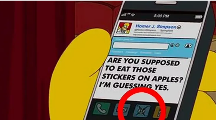 شوهد هومر في الحلقة التي حملت عنوان "Ned 'n' Edna's Blend Agenda"، وهو يستخدم هاتفه الذكي، ليظهر تطبيق على الشاشة الرئيسية لهاتفه، يشبه إلى حد بعيد شعار X الجديد.