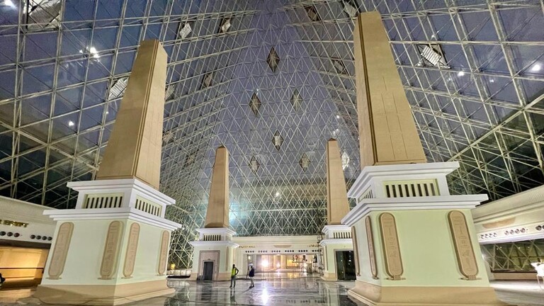 ويقع الهرم الزجاجي في منطقة البهو الرئيسي للمحطة ويبلغ ارتفاعه 40 مترا، وتوجد أسفل الهرم من الداخل 4 مسلات على الطراز المصري القديم.