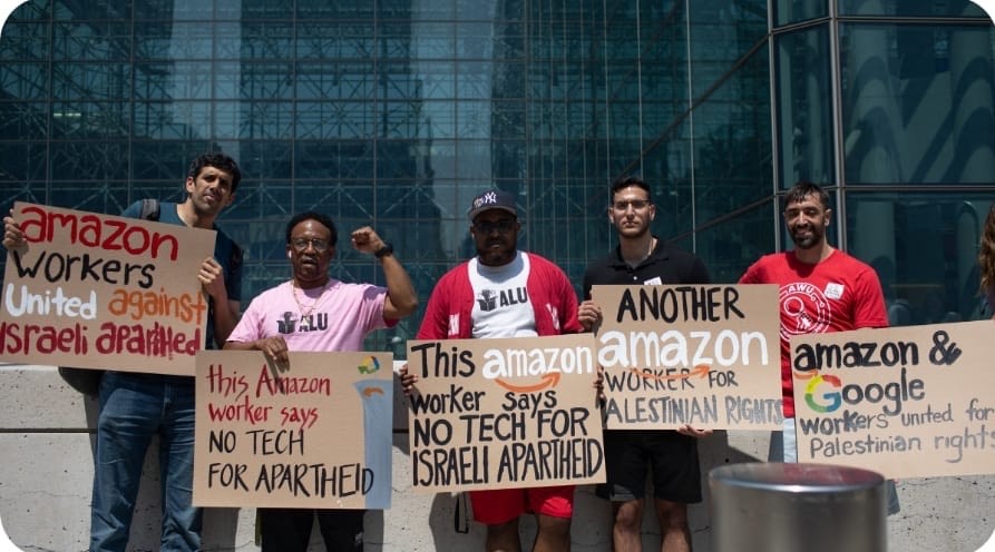 وفي ذات السياق، نظم عمال شركة "أمازون" مؤخرًا، وقفةً احتجاجية في مدينة سياتل، احتجاجًا على دعم إدارة شركتهم لنظام الفصل العنصري (الأبارتهايد) الإسرائيليّ.