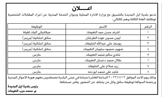 وظائف شاغرة  ..  ومدعوون لإجراء مقابلات شخصية  ..  أسماء
