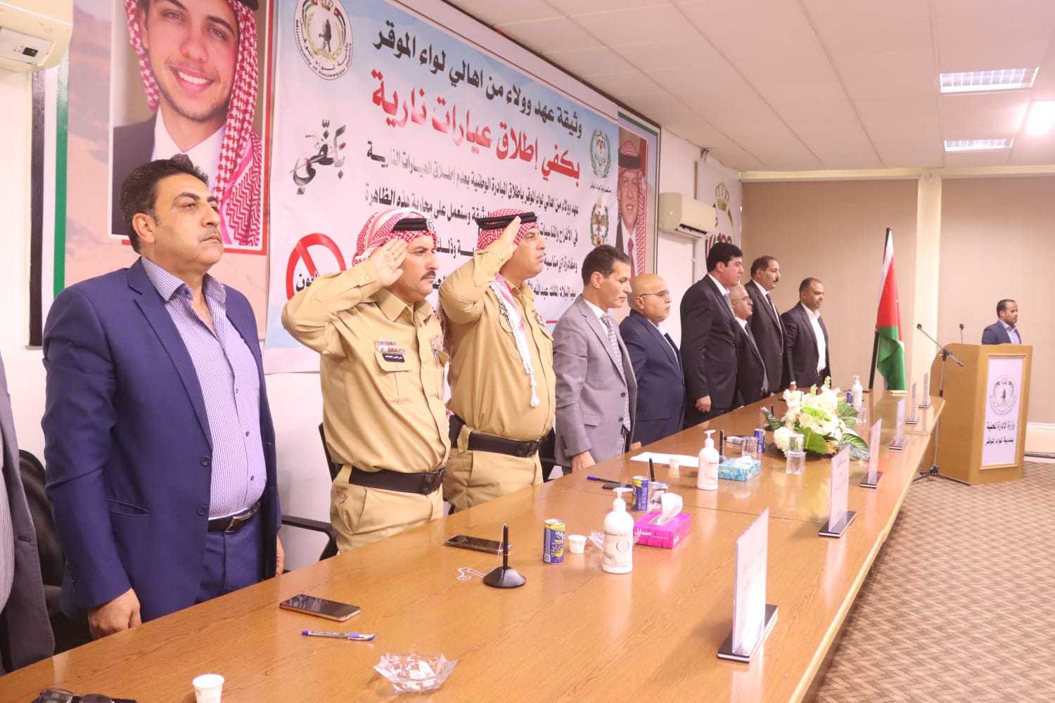 وفي سياق متصل، وقعت فعاليات أهلية ورسمية بلواء الأغوار الشمالية الأحد، وثيقة شرف والتزام لمنع إطلاق العيارات النارية في المناسبات الاجتماعية.