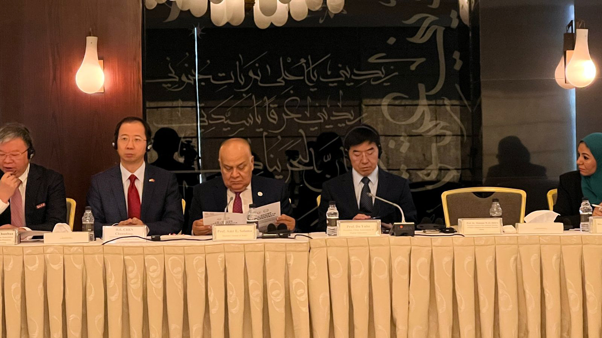 بدوره أكد رئيس الرابطة الصينية للتعليم العالي الدكتور دو يو بو أهمية تعزيز شراكات قوية بين الجامعات الصينية والعربية ، يمكننا تبادل أفضل الممارسات والتعاون في مشاريع البحث والتعلم من تجارب بعضنا البعض للتغلب على التحديات التي تواجه مؤسسات التعليم العالي العربية .