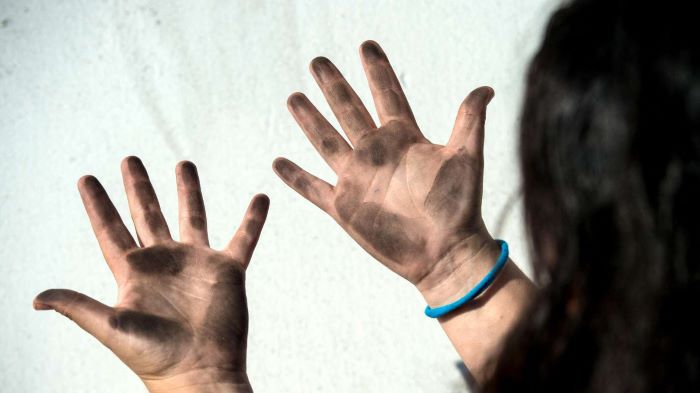 - وضع أيديهم وألعابهم المغطاة بغبار الرصاص في أفواههم.