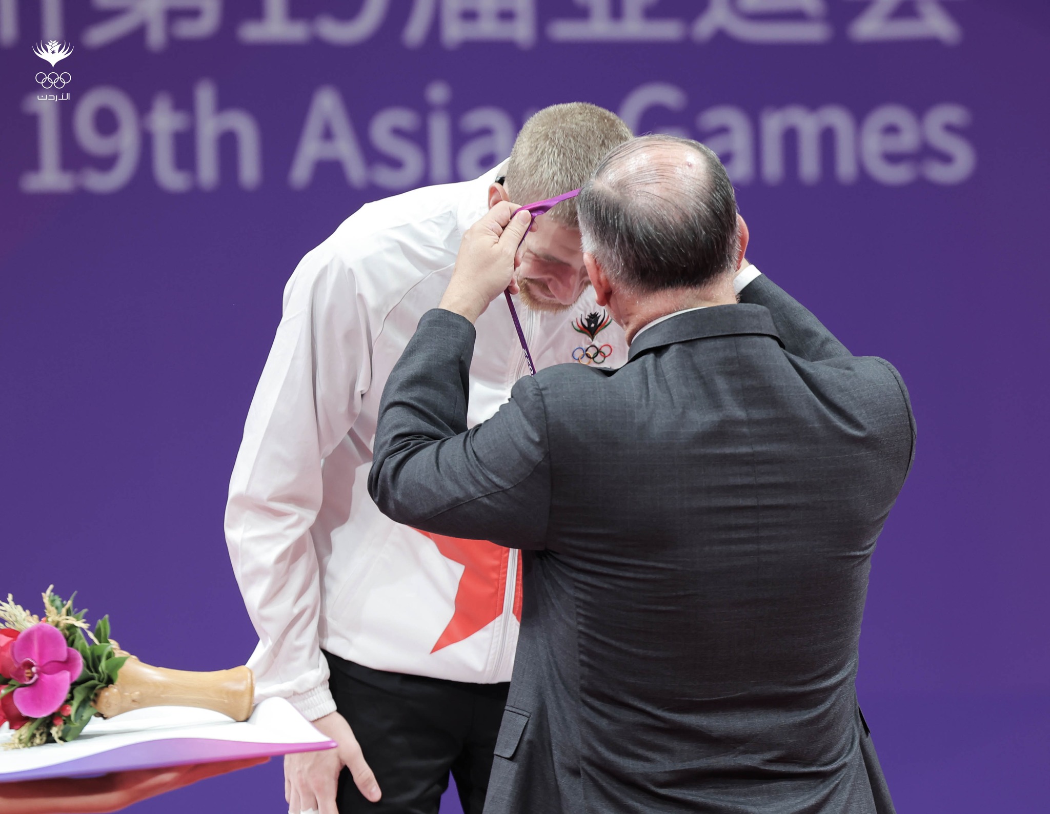 كما حضر سموه تتويج لاعب منتخبنا الوطني زيد مصطفى بالميدالية الفضية وذلك ضمن منافسات وزن تحت 86 كغم في دورة الألعاب الآسيوية المقامة في مدينة هانغتشو الصينية.