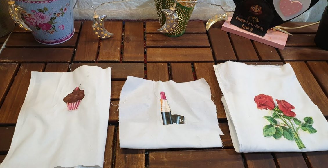 تنظيف سطح صلب كالطاولة ثم يتم وضع وسادة من القطن عليها تكفي لتغطية مساحة قطعة الملابس التي تم إختيارها للطباعة عليها.