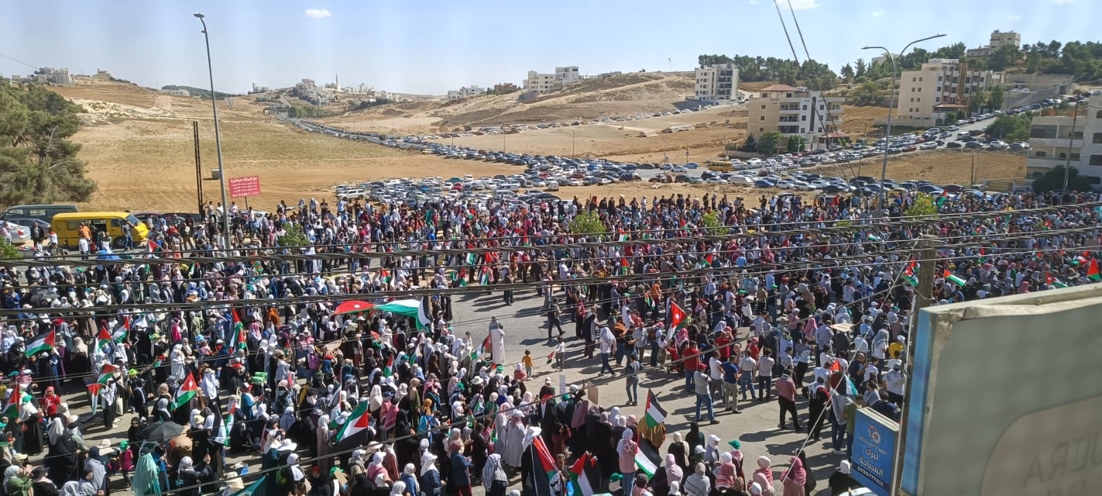 وتظاهر عشرات الآلاف من الاردنيين في العديسة في لواء الاغوار الشمالية وهي اقرب نقطة للحدود الفلسطينية مع تواجد كبير للامن الاردني .