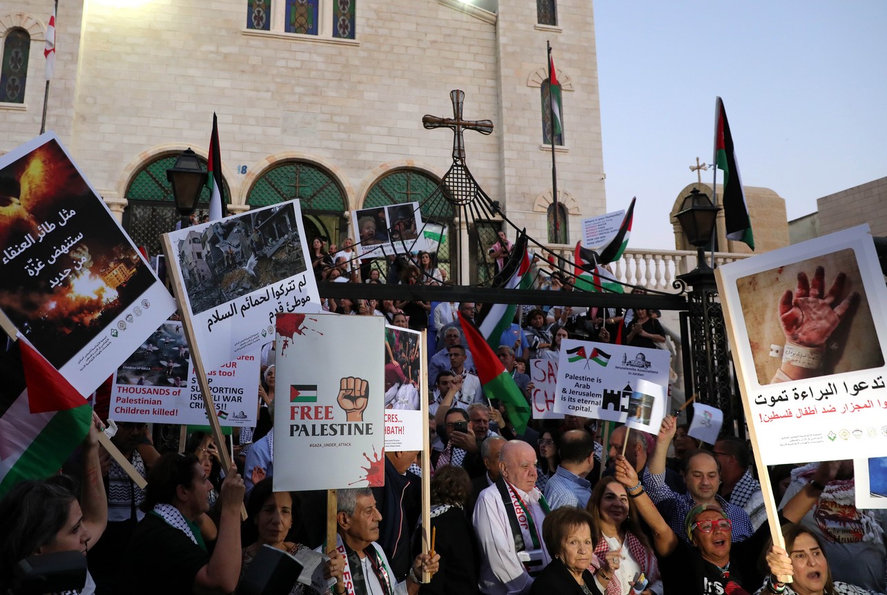 وكانت الطوائف المسيحية أقامت الصلوات تضامنا مع الشعب الفلسطيني وما يتعرض له من عدوان همجي من قوات الاحتلال.