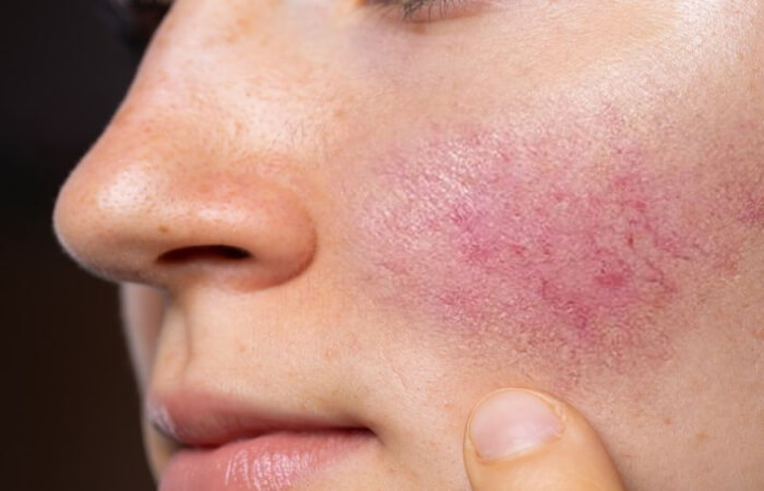 علاج الجفاف وحساسية البشرة، وذلك من خلال استخدام المنتجات الخاصة بالبشرة الحساسة، مثل المرطبات وواقيات الشمس حيث يجب أن يزيد معامل الحماية ضد الأشعة لتلك الواقيات (SPF) عن 50.