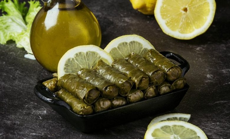 تحشى أوراق العنب بحشوة الأرز واللحم المفروم.