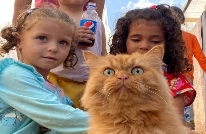 أضفت ثلاثة قطط أجواءً من الفرح والسرور، لأطفال غزيين في مدينة من الخيام المؤقتة بجنوب قطاع غزة، وهم سمسم وبراوني وليزا، واللاتي استطعن أن يمنحن الأطفال لحظات نادرة من البهجة للأطفال الذين فقدوا أي مظهر من مظاهر الحياة الطبيعية في حياتهم.