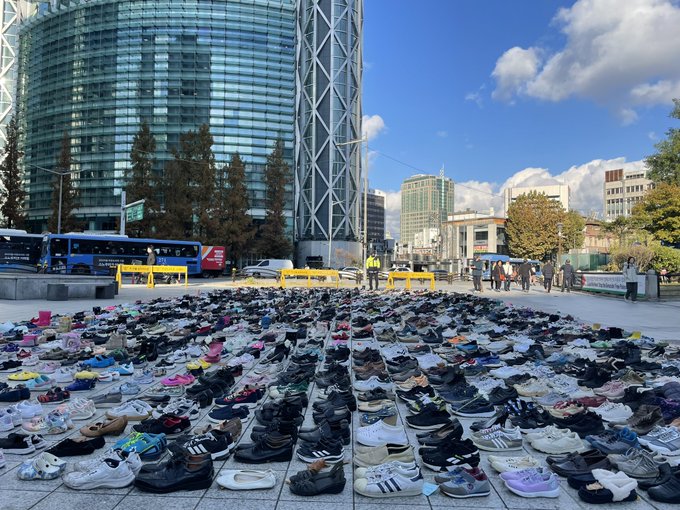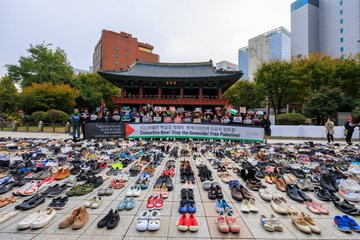 وقال الناشط هان سو-يونغ: "إننا نقف أمام الأحذية التي ترمز إلى كل من قُتلوا في قطاع غزة والضفة الغربية وإسرائيل خلال أكثر من 75 عاما من الاحتلال الإسرائيلي". "هذه الأحذية سوف تظهر أن الوفيات ليست مجرد أرقام".