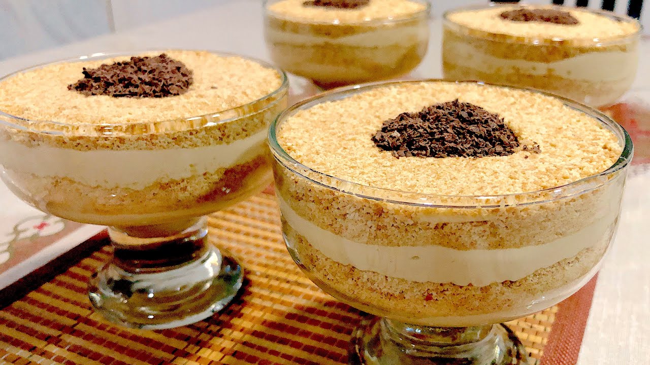 نضع قطع البسكويت بالكاكاو في الخلّاط الكهربائي مع ملعقة الزبدة، ونتركها حتى تُطحن جيّداً، ثمّ نضع كميّة قليلة منها في كؤوسٍ صغيرة، ويمكن وضع القليل من ماء الأناناس فوق البسكويت.