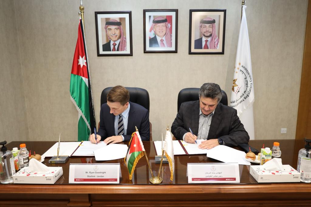 وقعت في هيئة تنظيم قطاع الاتصالات، رخصة اتصالات فئوية عامة مع شركة ستارلينك الأردن، ووقع الرخصة عن الهيئة رئيس مجلس المفوضين المهندس بسام السرحان وممثل الشركة في الأردن بحضور نائب رئيس مجلس مفوضي الهيئة ، وقد جاء توقيع الاتفاقية استنادا لأحكام قانون الاتصالات والتعليمات التي تمكن الشركة من تفعيل خدماتها الساتلية في المملكة بعد أن استكملت أوراقها الرسمية لدى الهيئة وترخيصها كشركة عاملة في سوق الاتصالات المحلية.