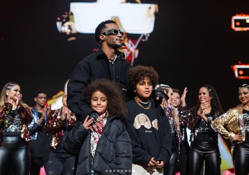 فاجئ نجلا الفنان المصري محمد رمضان، بصعودهما إلى خشبة المسرح أثناء تأديته أغنية "إنساي"، في الحفل الذي أقامه على مسرح محمد عبده أرينا ضمن فعاليات موسم الرياض لعام 2023.