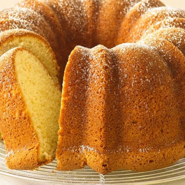 دهن قالب الكيك بالزيت، ومن ثمّ رش الدقيق عليه.