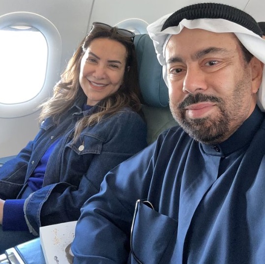 وظهرت هدى حسين مع الفنان عبدالعزيز المسلم، الذي وثق صور تجمعهما على متن الطائرة خلال مغادرتهما الكويت إلى السعودية .