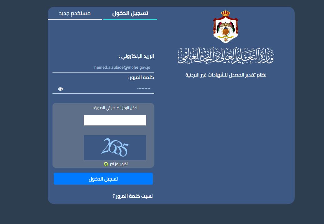 أطلقت وزارة التعليم العالي والبحث العلمي من خلال مديرية تكنولوجيا المعلومات والتحول الإلكتروني وبالتعاون مع مديرية مؤسسات التعليم العالي في الوزارة منصة إلكترونية جديدة يمكن من خلالها تقديم طلبات إلكترونية لاحتساب المعدل وتحديد التقدير للشهادات الجامعية غير الأردنية، والتي لا يظهر فيها معدل الطالب ولا يتم أيضاً فيها تحديد التقدير.