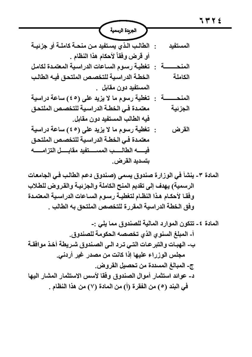وحرم النظام، الطلبة في الجامعات الرسمية، الحاصلين على معدل أقل من 68 بالمئة، من الاستفادة من المنح والقروض الجامعية.