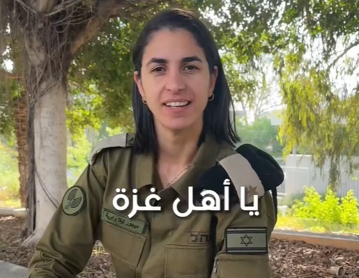 وظهرت إيلا، خلال الفيديو، وهي ترتدي اللباس العسكري الإسرائيلي وتتحدث باللهجة الفلسطينية، حيث قالت " يا أهل غزة، بدي أسألكم سؤالين ورجاًء جاوبوني بصراحة، شو كان صار لو حماس كانت عم تحميكم من الظلم والظلام، بدل ماتعيشكم في جحيم ودمار وتسرق منكم كل شي بتملكوه، حتى كرامتكم؟ يا أهل غزة، كيف قبلتوا تكونوا أنتوا وأطفالكم ونساءكم وحتى شيوخكم درع بشري واقي يحمي دواعش حماس، بدل ما انكم تعيشوا، بأمان وسلام؟ مجرد سؤال ورد غطاه " .