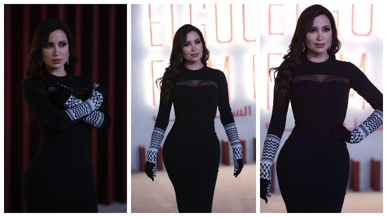 نسرين طافش بفستان مزين بالكوفيه الفلسطينية