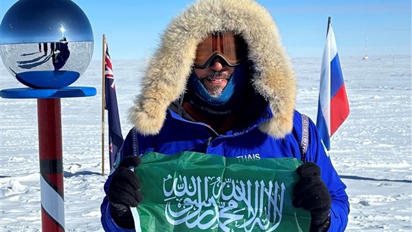 مغامر يرفع العلم السعودي في القطب الجنوبي
