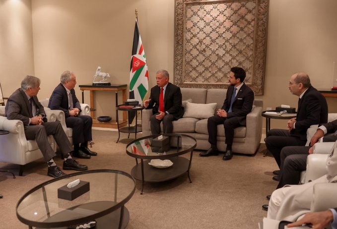 وحضر اللقاء نائب رئيس الوزراء وزير الخارجية وشؤون المغتربين أيمن الصفدي، ومدير مكتب جلالة الملك، جعفر حسان، والسفيرة الأميركية في عمّان يائل لمبرت.