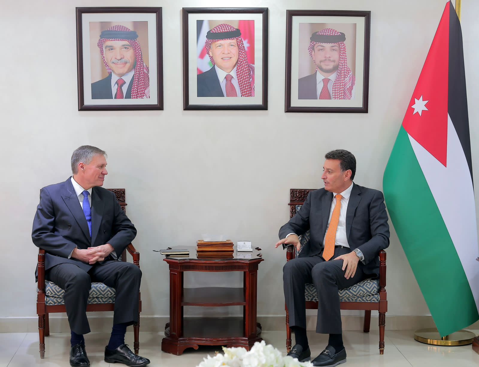 من جهته أكد السفير البريطاني حرص بلاده على تعزيز آفاق التعاون مع الأردن في المختلف المجالات، مؤكداً إيمان بلاده بحل الدولتين كسبيل لإنهاء الصراع وتحقيق السلام الشامل الذي يلبي تطلعات الشعوب بحياة آمنة ومستقرة بعد سنوات من الحرب والدمار.