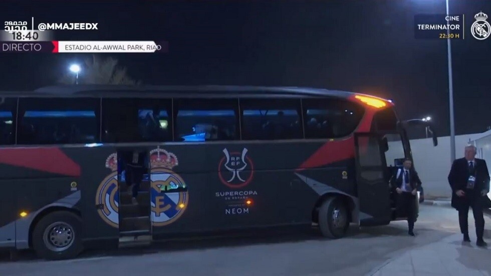 ولم يذكر الأمن السعودي في بيانه أن الحافلة تعود لنادي ريال مدريد، لكن في المقطع يظهر شعار الفريق الملكي على الحافلة من الخارج.