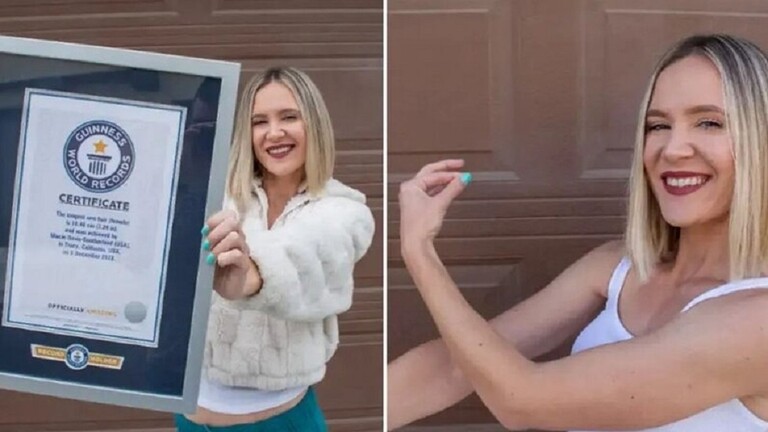 حطمت فتاة من الولايات المتحدة الأمريكية الرقم القياسي عالمياً ودخلت موسوعة "غينيس" بسبب شعر ذراعيها الذي يبلغ طوله 18 سنتيمترا.
