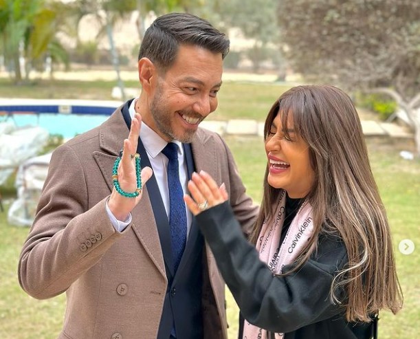 وشاركت منة سلسلة صور توثق لقطات من كواليس العمل عبر حسابها في "إنستغرام"، إذ ظهرت برفقة زاهر في حالة معنوية مرتفعة يتبادلان الضحكات وردود الأفعال الفكاهية.