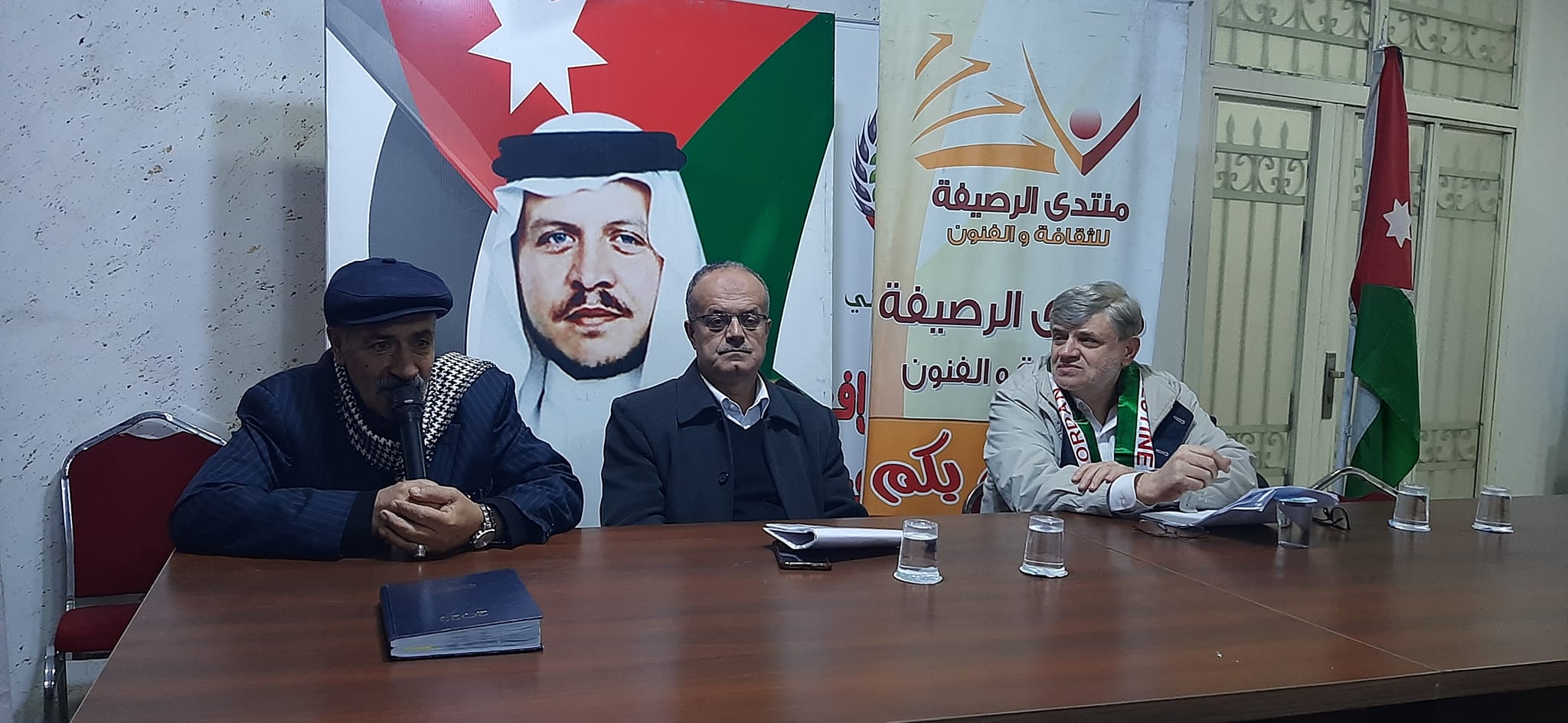 وتأتي الأمسية التي أقيمت بقاعة حزب الائتلاف الوطني، وأدارها محمود الحاج صالح، ضمن أنشطة المنتدى الداعمة للشعب الفلسطيني ومقاومته الباسلة ضد العدوان الصهيوني، بحضور عدد كبير من أبناء الرصيفة والمهتمين بالشأن الثقافي.