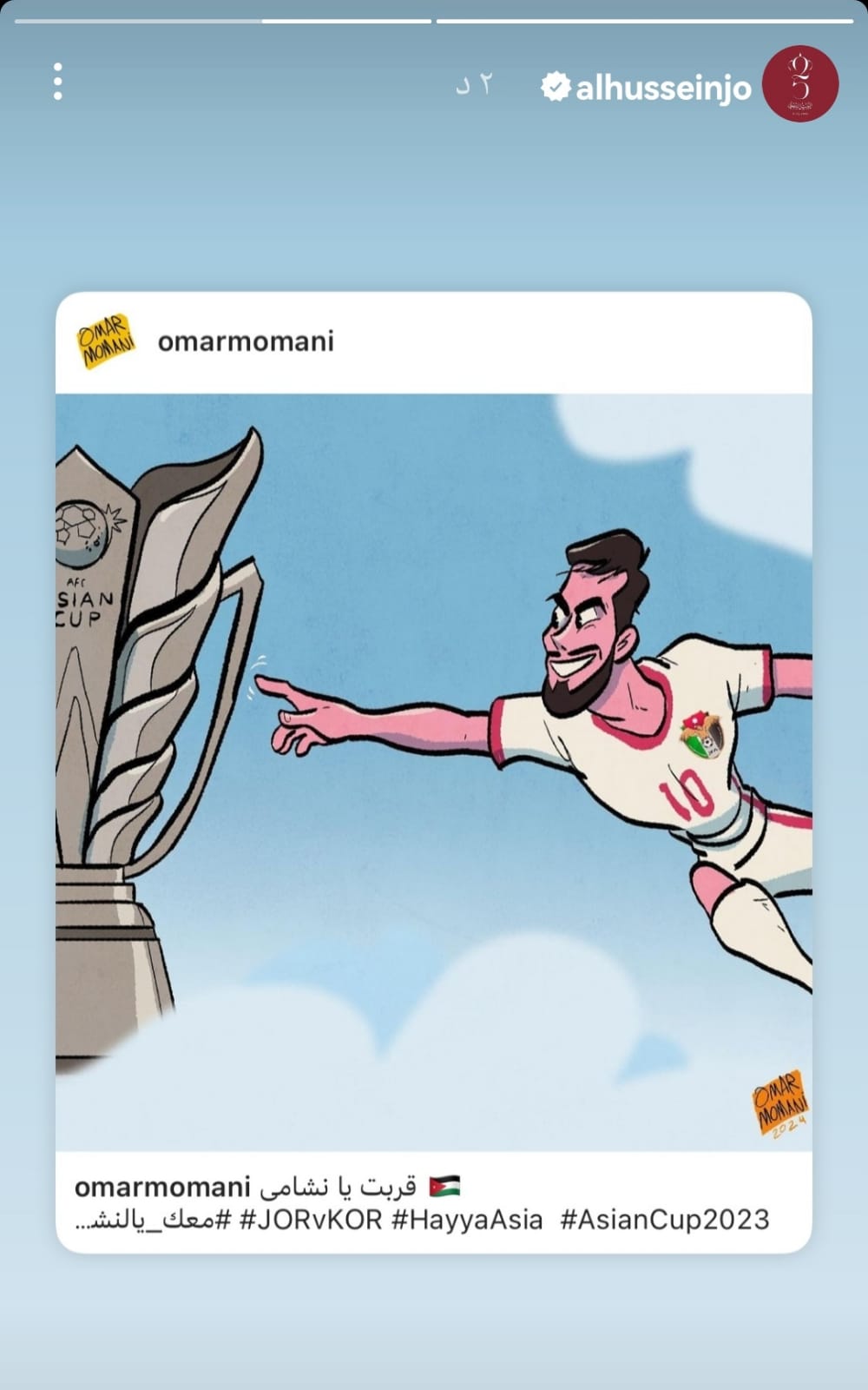 ولي العهد يعيد نشر صورة كاريكاتير عن منتخب النشامى