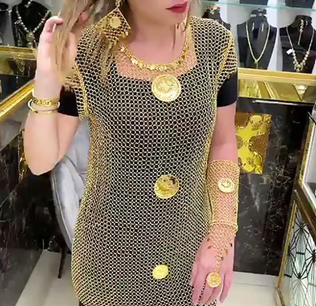 تصدر فستان مصنوع من الذهب الخالص الترند عبر مواقع التواصل الاجتماعي، بعدما عرضه صاحبه، وهو صائغ كويتي، للبيع بمناسبة عيد الحب، الذي يصادف في الـ 14 من فبراير (شباط) الحالي.