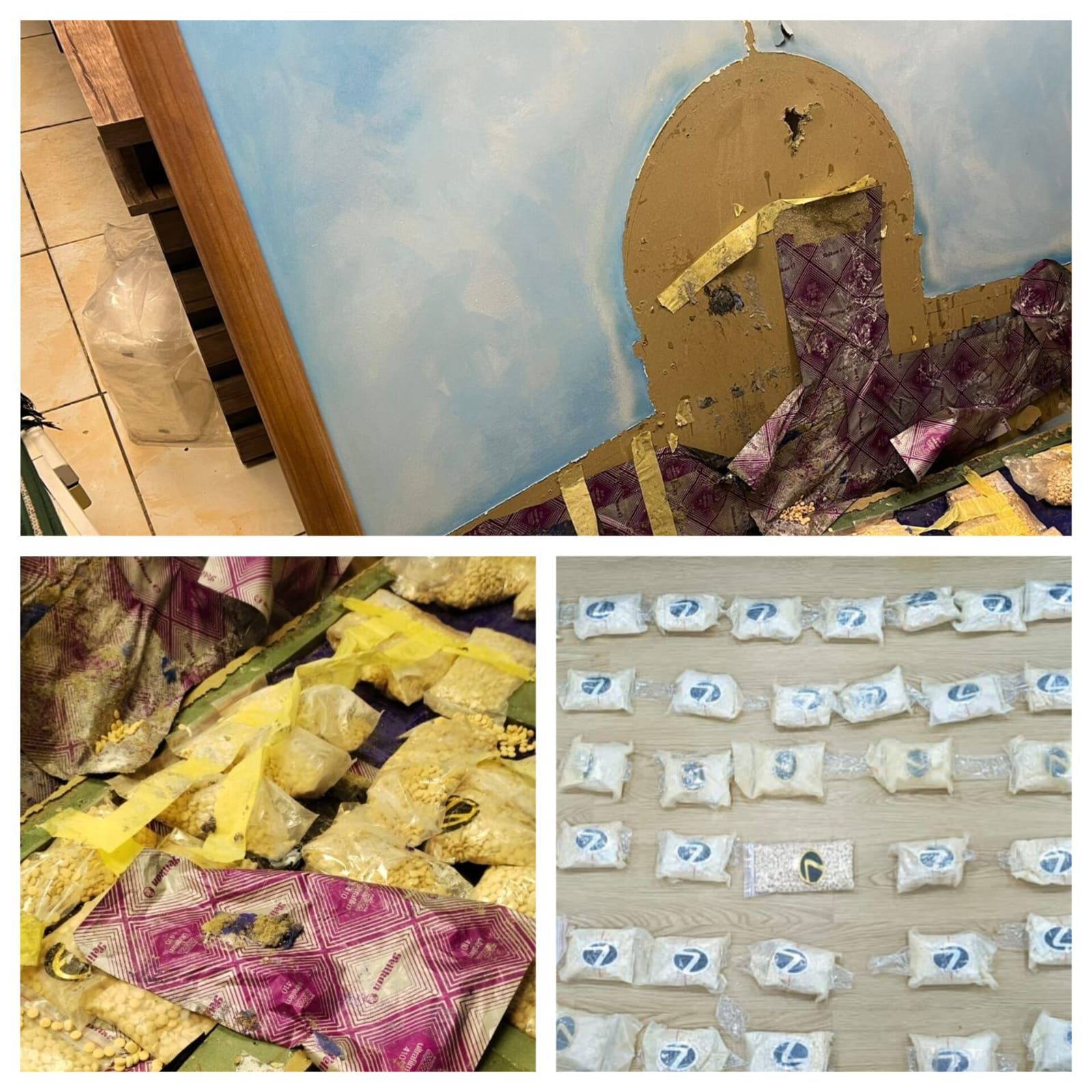 وأكّد الناطق الإعلامي أن أبرز تلك القضايا كانت في محافظة العاصمة إذ جرى بعد جهد استخباري وجمع للمعلومات حول خلية لتهريب المخدرات تحديد هوياتهم وإعدادهم لكمية كبيرة من المواد المخدرة تمهيدا لتهريبها لاحدى دول الجوار عن طريق إخفائها داخل برواز ( صورة ) بطريقة مخفية ، وإرسالها كطرد بريدي، إذ تم تحديد مكان وجود الطرد وضبطه وعثر بداخله على 25 ألف حبة مخدرة وبالتزامن مع ذلك تحركت فرق القبض والمداهمة وتمكنت من إلقاء القبض على الاشخاص الثلاثة المتورطين .