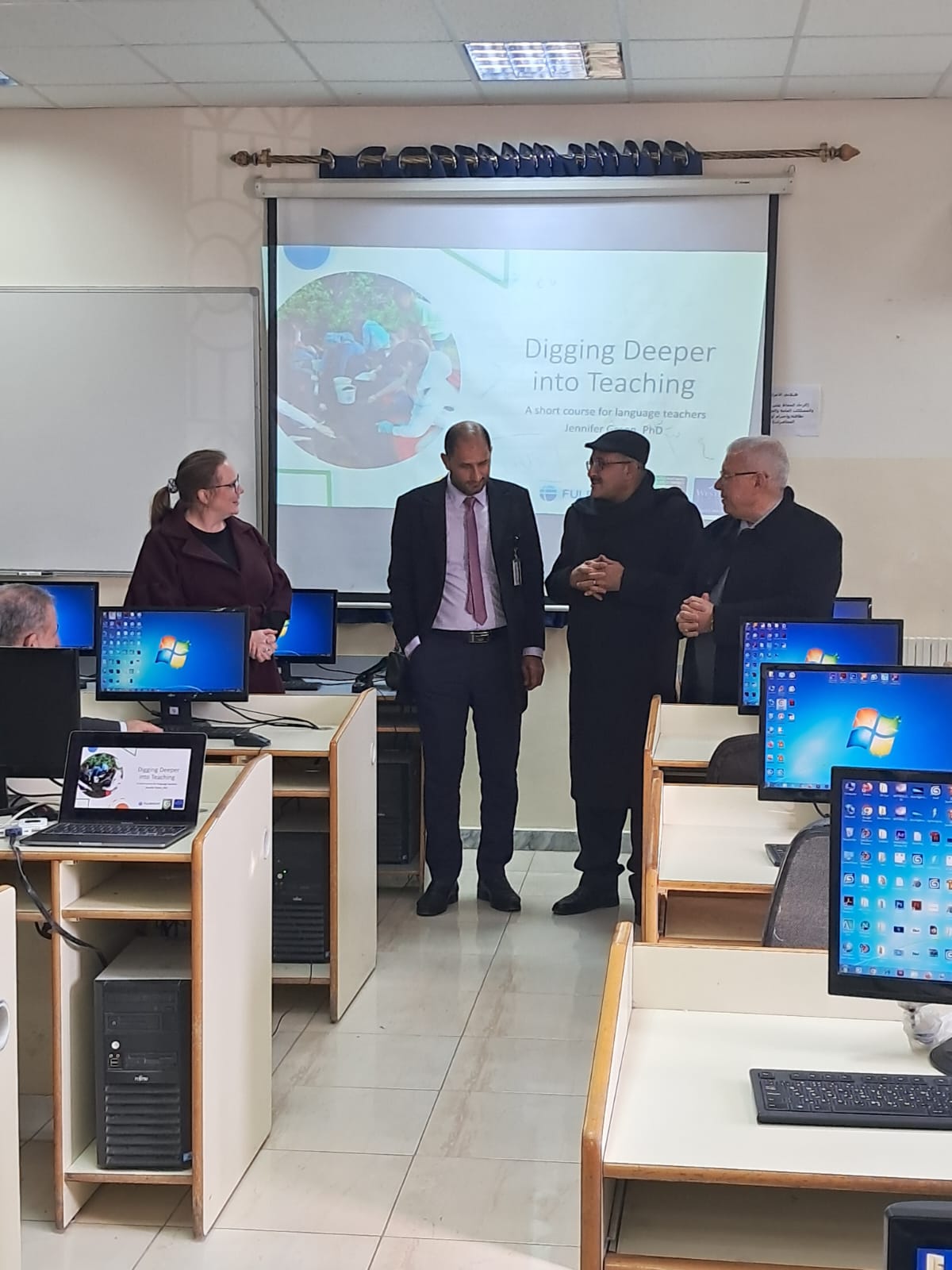 افتتح عميد كلية اربد الجامعية الأستاذ الدكتور يحيا سلامه خريسات الدورة التدريبية: "التعلم معا لتعزيز تدريس اللغة الانجليزية لدينا"، بحضور الدكتور جمال العمري مساعد مدير مركز تكنولوجيا التعلم والتعليم في مركز الجامعة ، والتي تنظمها وحدة التعاون والعلاقات الدولة ومركز تكنولوجيا التعلم والتعليم لمدرسي اللغة الانجليزية من أعضاء هيئة التدريس في كلية اربد والحصن وعجلون الجامعية ، والتي تقام في مركز الحاسوب في كلية اربد الجامعية تقدمها الدكتورة جينيفر غرين باحثة فولبرايت من جامعة واشنطن الأمريكية والتي تهدف إلى بناء القدرات الخاصة في مجال استخدام التكنولوجيا في العملية التعلمية والتعليمية ، حيث تستمر الدورة لمدة يومين.
