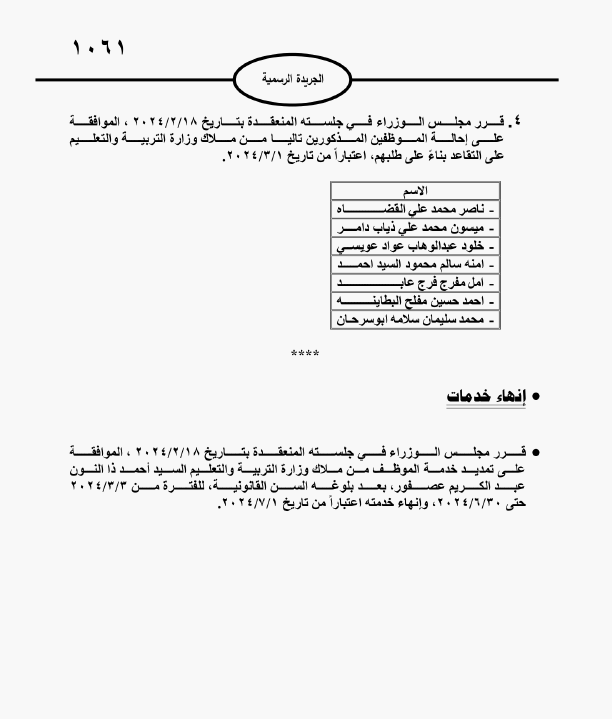إحالة موظفين حكوميين إلى التقاعد .. تفاصيل وأسماء