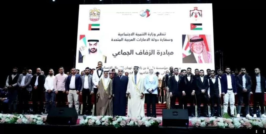 رعى وزير الأوقاف والشؤون والمقدسات الإسلامية الدكتور محمد الخلايلة، مساء الخميس، زفافا جماعيا لـ 200 عريس وعروس من الأيتام، أقامته وزارة التنمية الإجتماعية، والسفارة الإماراتية في عمان، بدعم من مؤسسة خليفة بن زايد آل نهيان للأعمال الإنسانية، على مسرح الأرينا في جامعة عمان الأهلية.