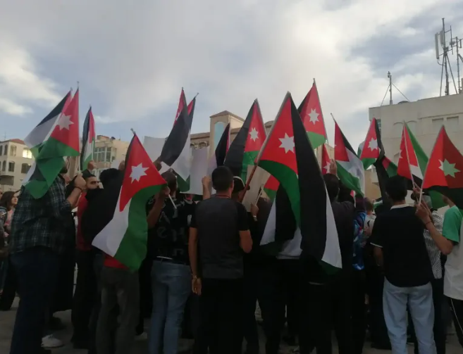 ورفع المشاركون الأعلام الأردنية والفلسطينية وشعارات تؤكد تضامن الأردن مع الأشقاء الفلسطينيين.