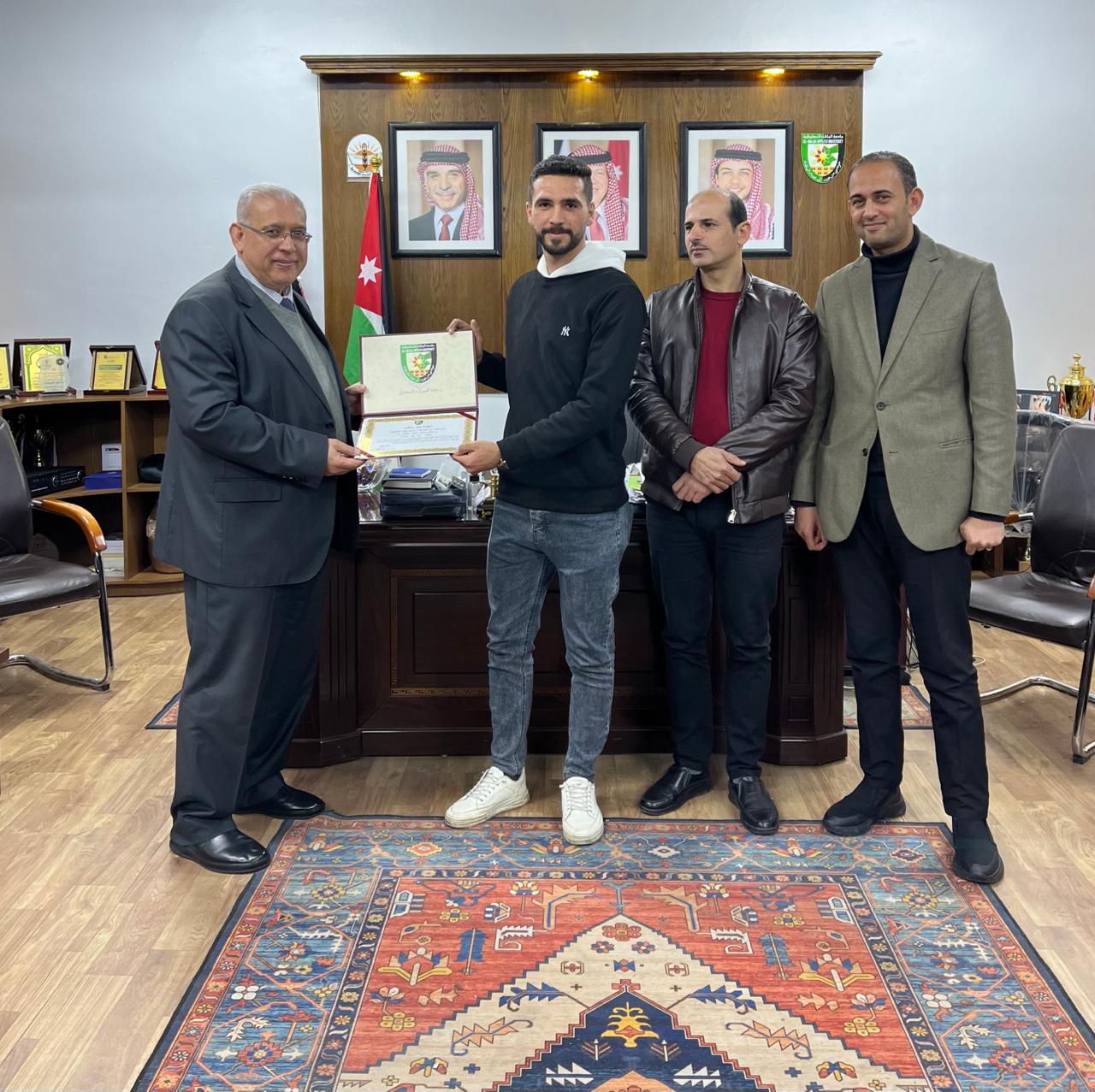 كرم عميد كلية اربد الجامعية الأستاذ الدكتور يحيا سلامه خريسات الطلبة المتطوعين من فريق بسمة غزل والذين نظموا "مبادرة تبادل الكتب " داخل حرم الكلية، بالإضافة إلى قارىء القرآن بحضور مساعد العميد للشؤون الطلابية ، تثميناً لجهودهم وتحفيزًا لتنمية مواهبهم وقدراتهم.