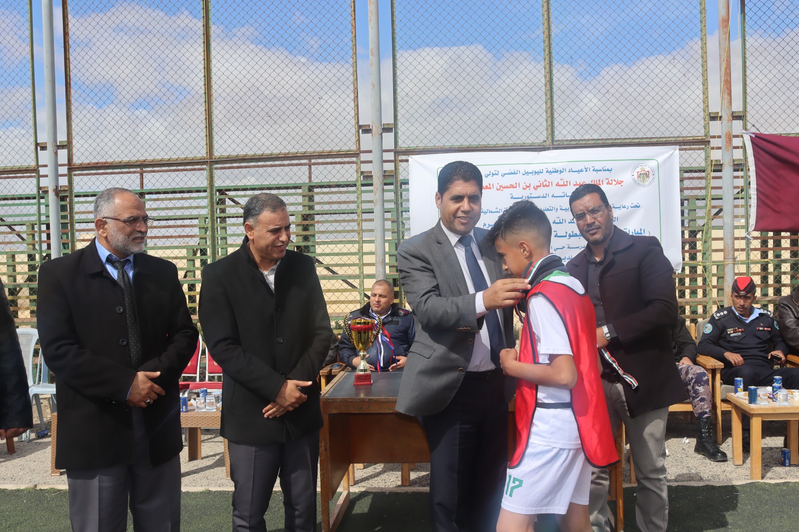 بمناسبة الاعياد الوطنية واحتفالا باليوبيل الفضي لتولي جلالة الملك عبد الله الثاني بن الحسين سلطاته الدستوريه،رعى مدير التربية والتعليم للواء البادية الشمالية الغربية الدكتور عبدالله الشرفات اليوم، وبحضور مدير الشؤون التعليمية الدكتور حابس البري المباراة الختامية لبطولة ابناء الخالدية لكرة القدم المرحلة الاساسية، والتي اقيمت باشراف من مدرسة حي السهل الاساسية للبنين وبدعم من بلديه الخالديه .